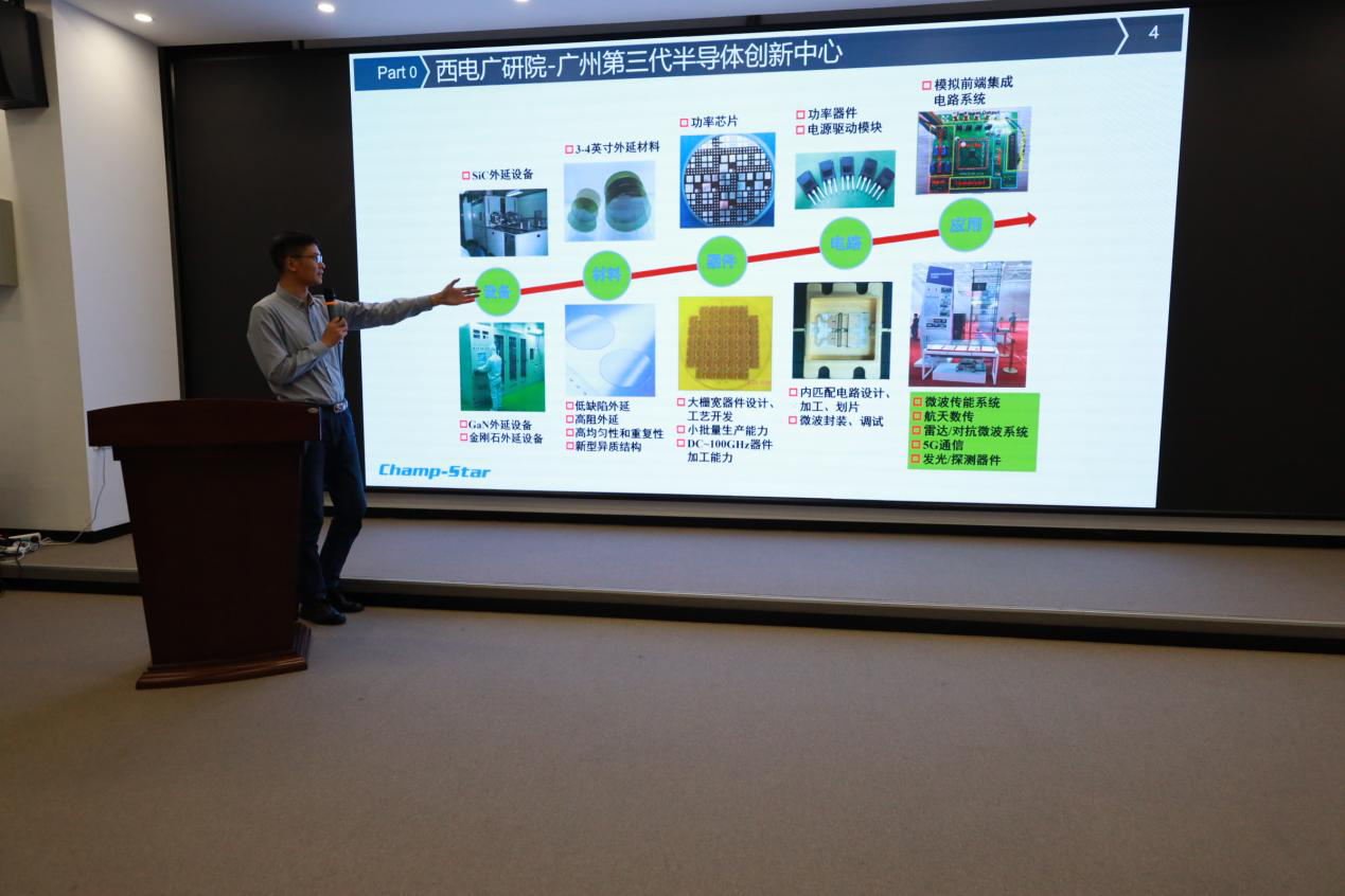 李祥东教授介绍了西电广州研究院氮化镓电力电子海归团队开发的整套硅基氮化镓芯片产业化技术。氮化镓器件作为第三代半导体的杰出代表,具有开关频率高、击穿场强大、耐高温等特点,在开关电源和射频应用中异军突起。李祥东教授依次从行业背景、市场预测、和技术路线等角度对氮化镓电力电子技术进行了全面剖析。在讨论环节,李祥东教授针对校友企业所提出的制造成本、功率等级以及融资需求等问题一一作了详细解答。